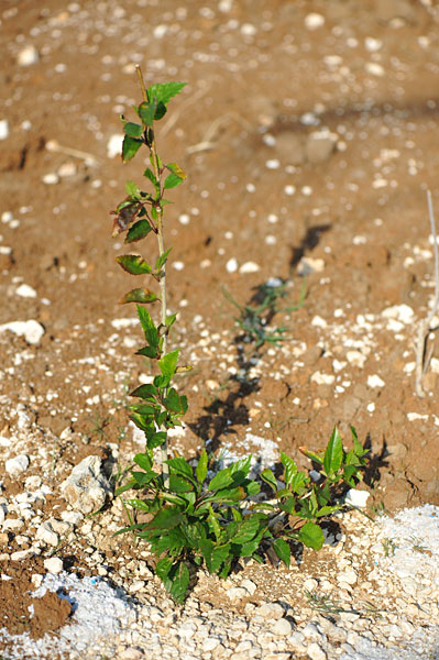 こちらは植え付け1ヶ月少々経って、すっかり定着したハイビスカス。