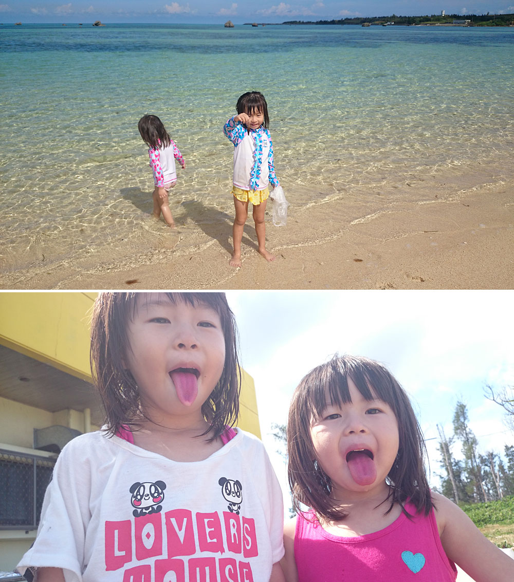 (水浴びして海水を流しておかないと、皮膚から水分を取られて後で苦労するらしい)