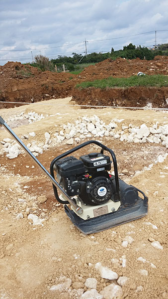 前回はひたすら地面を叩いてたわけだけど・・・そのあと、この石ころを、必要な部分に必要な量だけ敷き詰める。