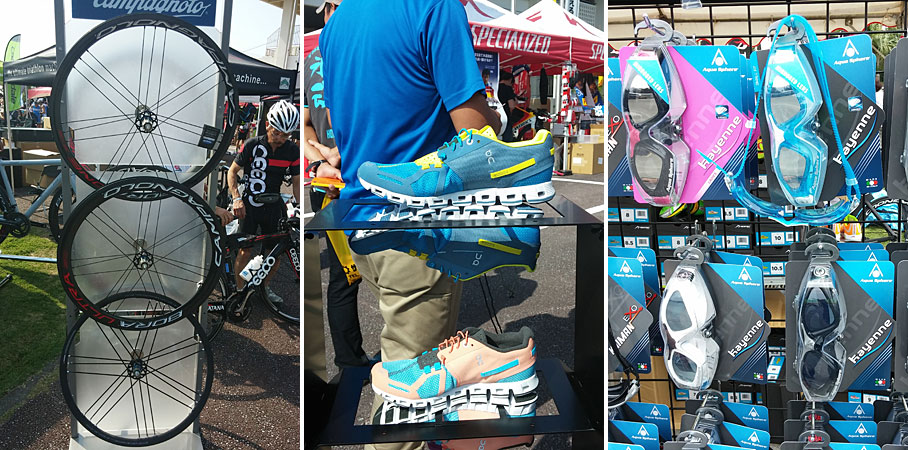 受付会場などは、普段は目にすることがないニューモデルのスポーツ用品がズラリ。