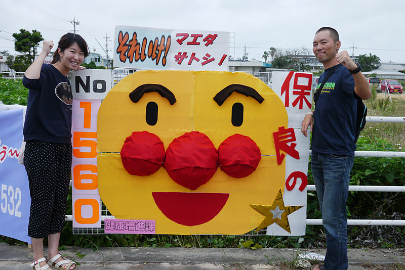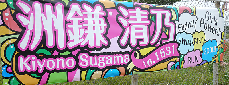 さて、宮古島トライアスロンの裏競技でもあり、見所でもあるのが横断幕。